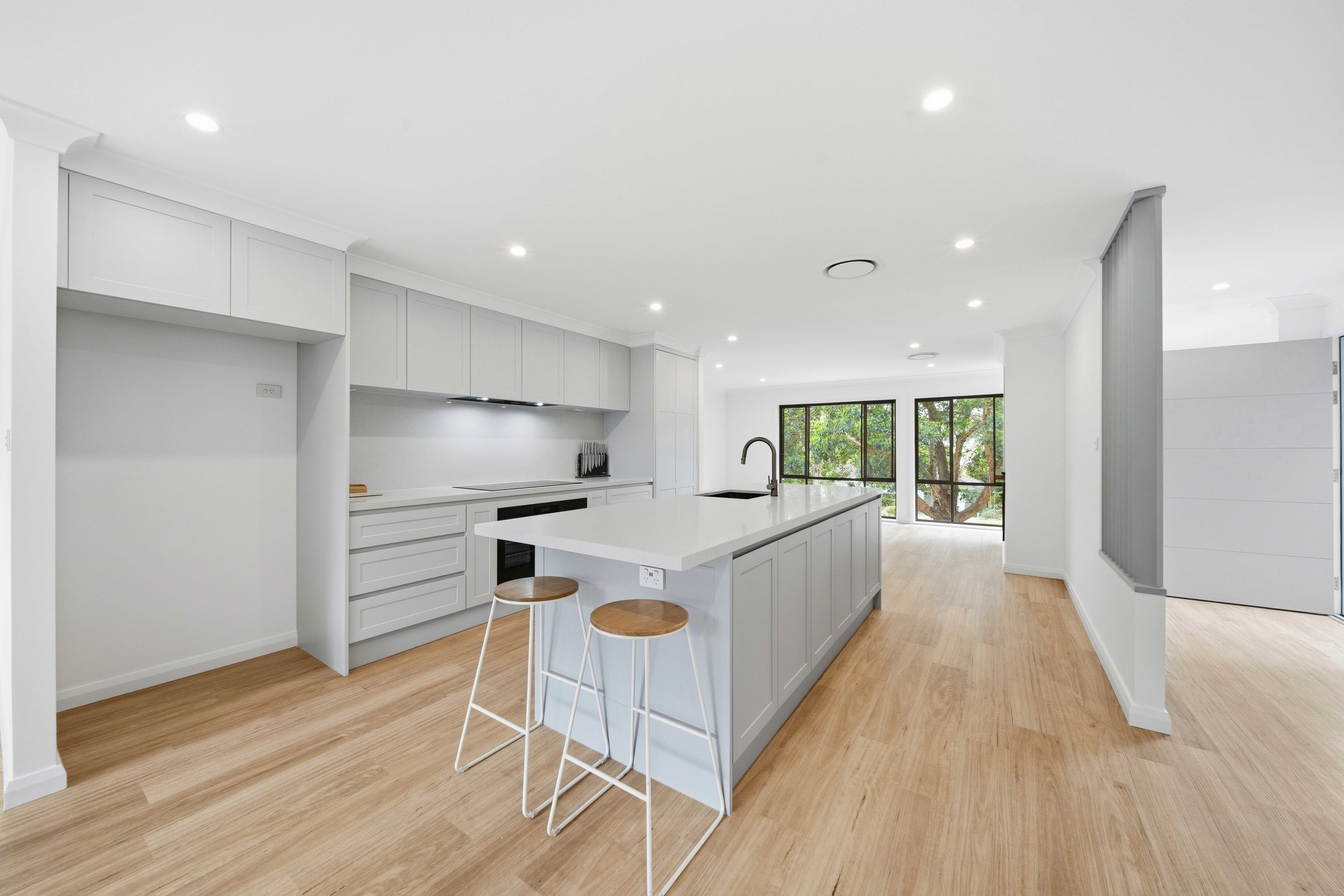 The team undertook a complete house renovation. This included structural work allowing us to reconfigure the layout, relocate the kitchen, and add a walk-in pantry to maximize usable space and enhance everyday practicality. With some amazing gun metal grey features, fireplace and many other finishes.
